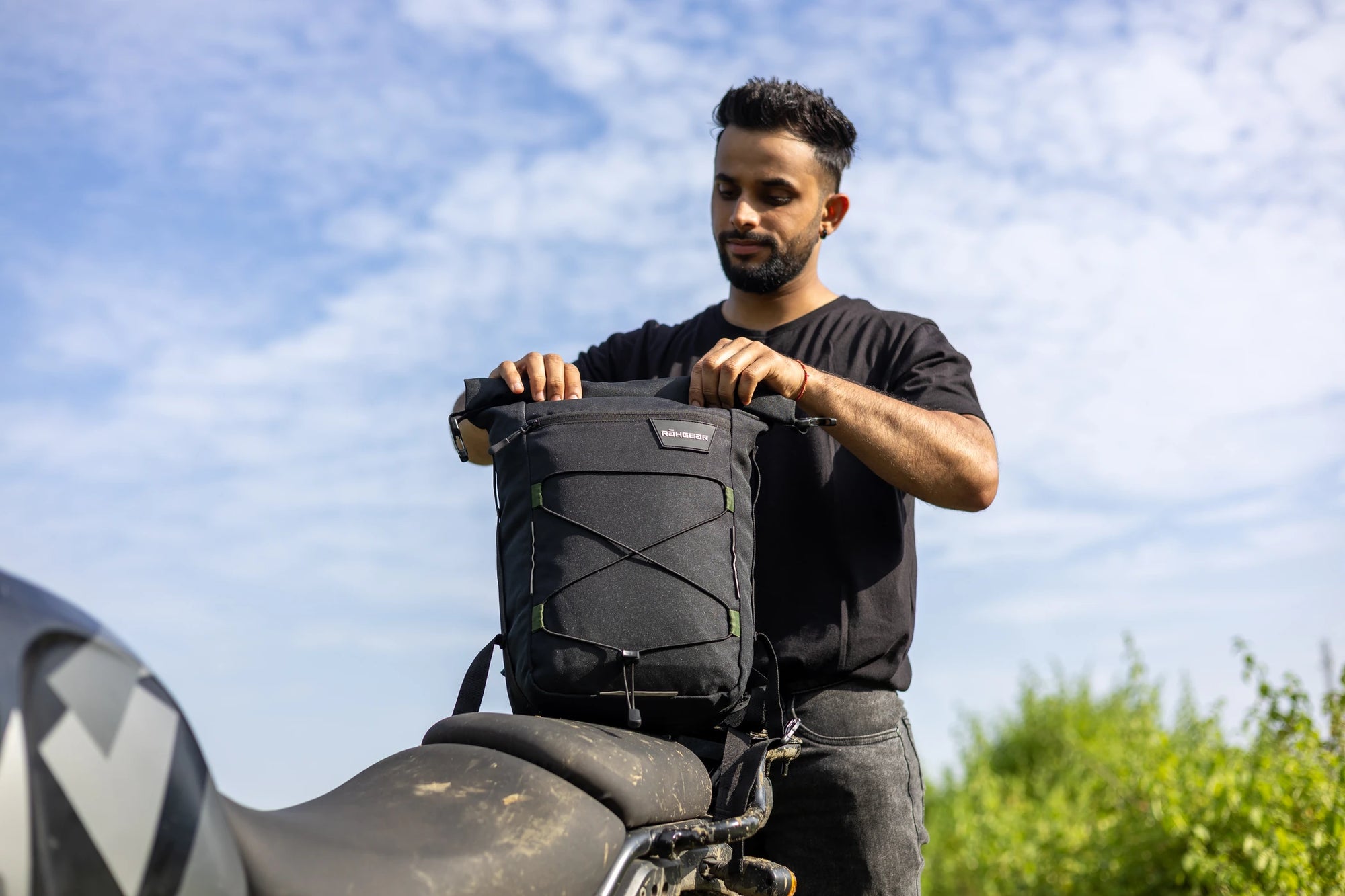 The Compack 15 is a 15-litre modular drybag that mounts as a motorcycle tail bag and converts into a backpack when you’re off it. Whether you’re heading out on a day ride, a weekend tour, or just commuting through unpredictable weather, the Compack 15 carries your essentials securely, keeps them dry, and stays out of your way.