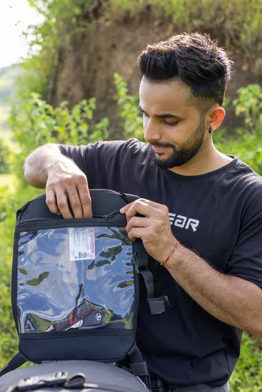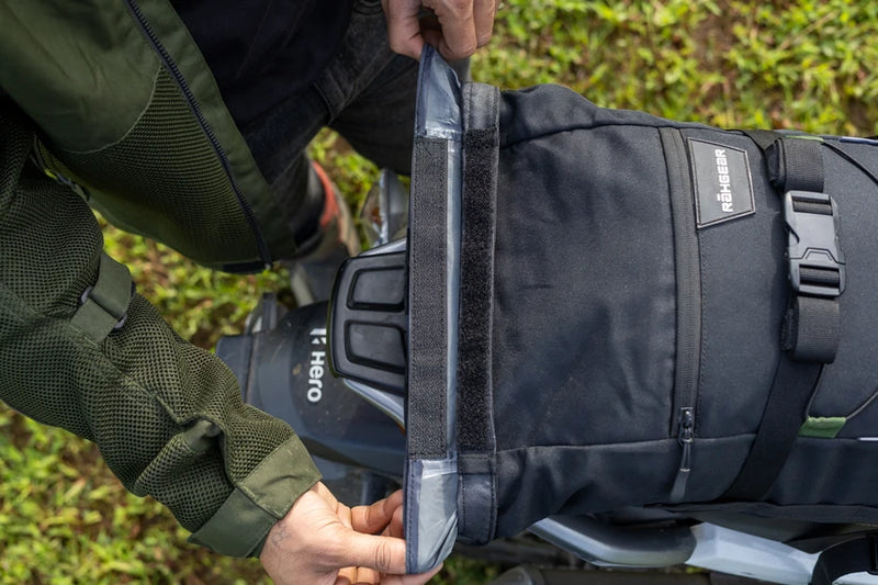 Flip the beavertail to the transparent side and slide in your day’s route map or event pass — visible, accessible, and protected without needing to unzip anything.
