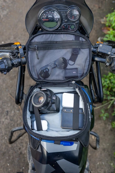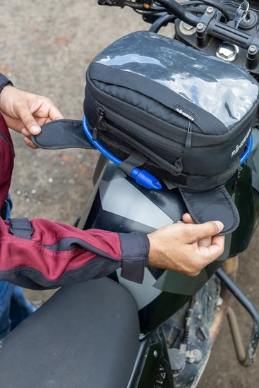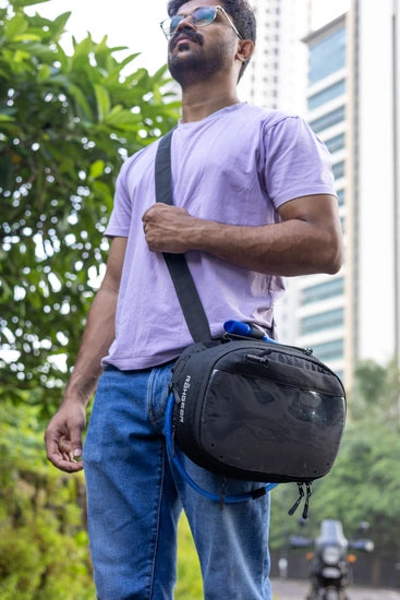 TrailBlazer comes with a clear navigation pocket located on top. This pocket offers external access, allowing you to check your maps, GPS devices, or smartphones without missing a beat. \n \nInside the main compartment, elastic bands keep your items securely in place, even when the bag isn't fully packed. This feature ensures a tidy and organised interior. Plus, it also boasts an easy mounting and unmounting system with a secure magnetic attachment, making your preparation effortless and saving you valuable time. \n \nAdditionally, the TrailBlazer comes with hidden straps that enable hassle-free conversion into a sling bag, perfect for off-bike exploration and adventures. \n \nExperience the perfect blend of functionality, durability, and versatility, and embark on unforgettable riding adventures with confidence, knowing your essentials are secure, easily accessible, and protected.